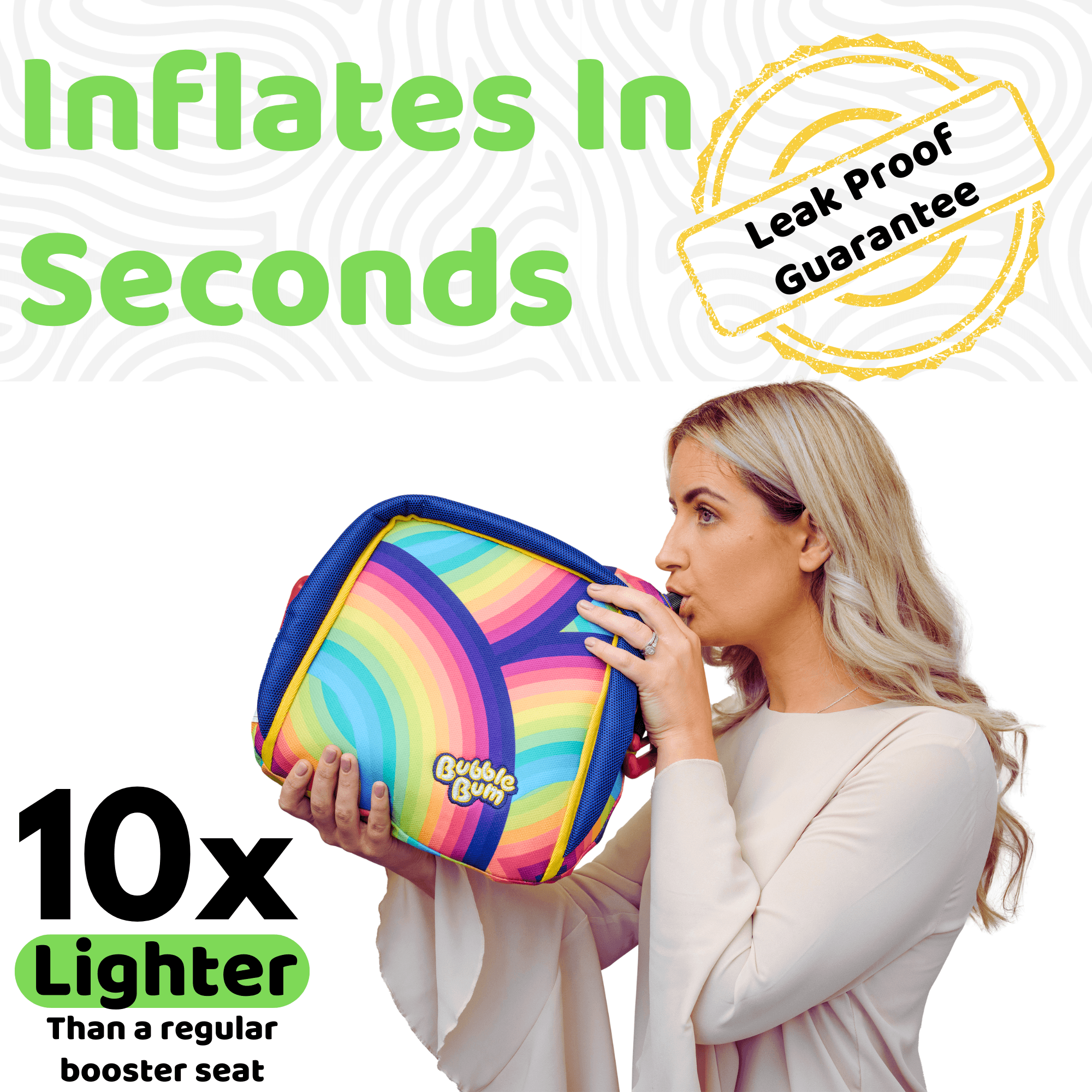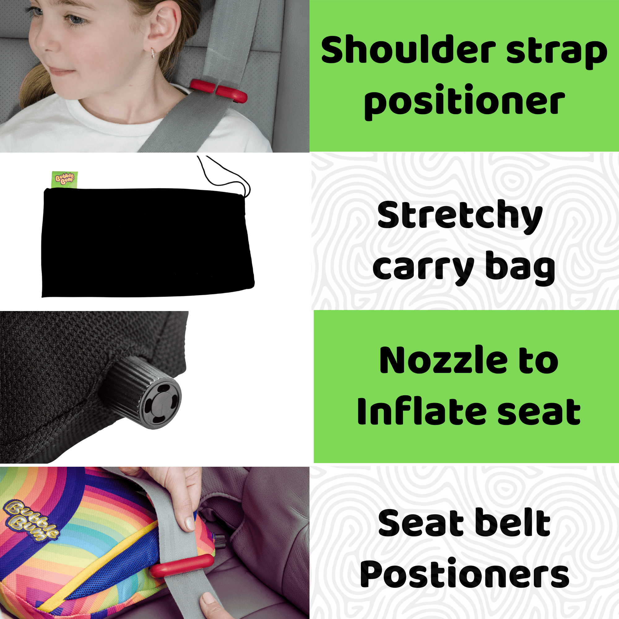 The BubbleBum Inflatable Car Booster Seat is a lightweight, award-winning solution designed for children aged 4 to 11 (40–100 lb, 40–59 in tall). Inflating in seconds and folding compactly, it’s ideal for travel, carpooling, and rentals. Certified to meet U.S. and European safety standards, it features memory foam for comfort and built-in belt-positioning clips to ensure a secure, proper seatbelt fit. Its slim profile allows three seats to fit across most backseats, making it a practical choice for families prioritizing safety and portability.